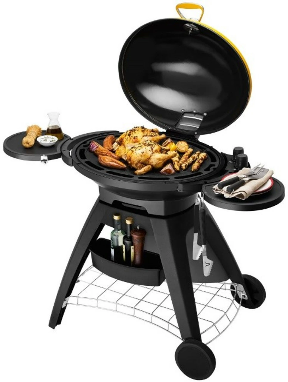 Other features of BBQ Temperature gauge, hood up or hood down cooking, grease collection tray, compact