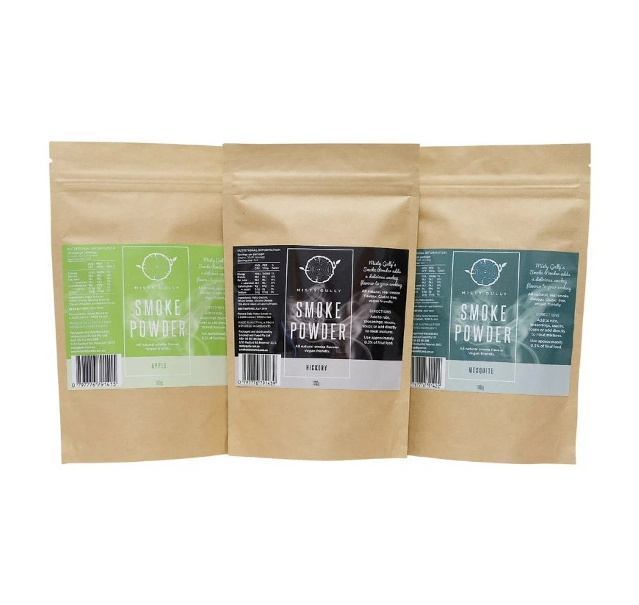Supplied in a stand up zip lock sealed pouch, smoke powder can be used in foods or on foods making them a great addition to Sausages & Jerky. You can add Powdered smoke to any food including sauces, soups and stuffing’s, or sprinkle on your BBQ meats while they’re on the grill! Recommended for use in the dry-curing process, with products like the Buckboard Bacon Cure. Eliminates the need for the smoking process.