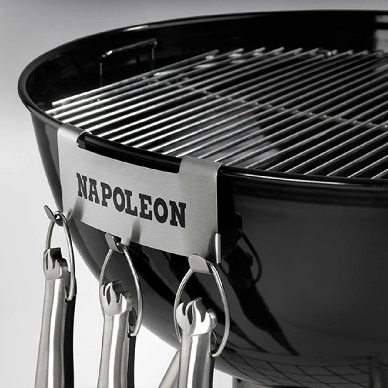 Charcoal grilling enthusiasts love their grills, but, due to their compact size, they are notoriously short on storage. Napoleon’s Charcoal Kettle Tool Hanger is an easy to install accessory that provides storage for up to three tools. Just hang the Charcoal Kettle Tool Hanger off the side of your kettle grill and you’re ready to get hanging. The stainless steel construction will hold up to the elements and weather without any issue. This product is specially made to fit the Rodeo Charcoal Kettle Grill – Leg Model.