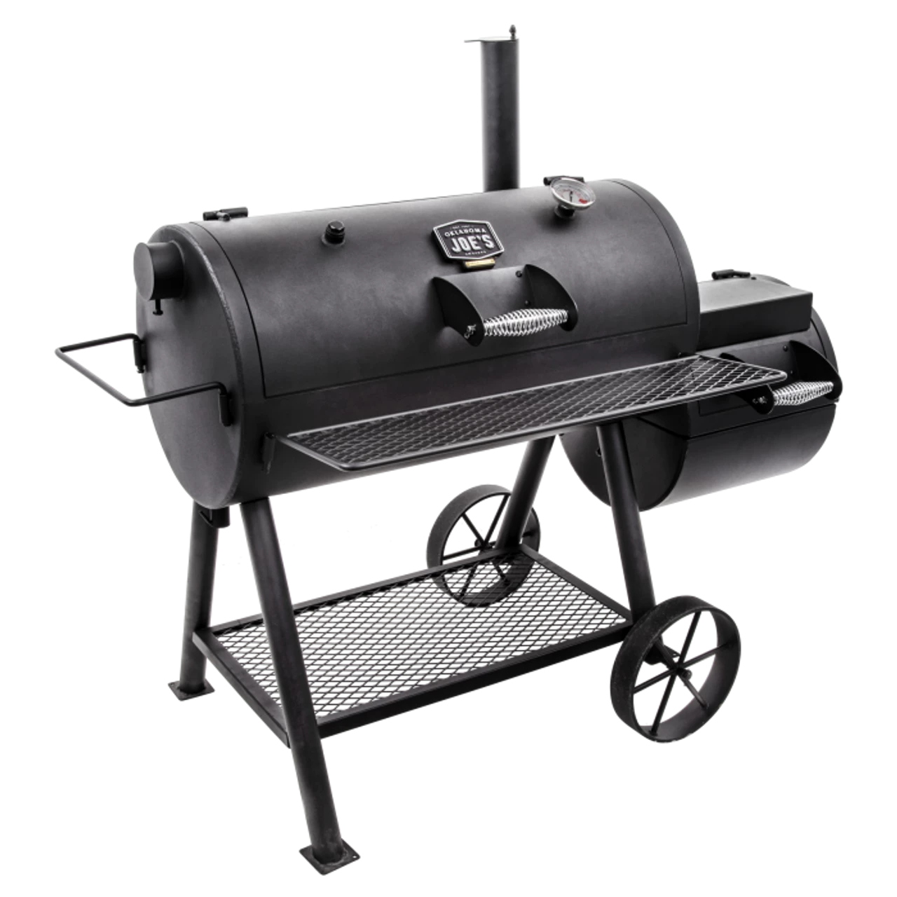 - Optional smokestack locations let you choose between reverse flow smoking and traditional offset smoking