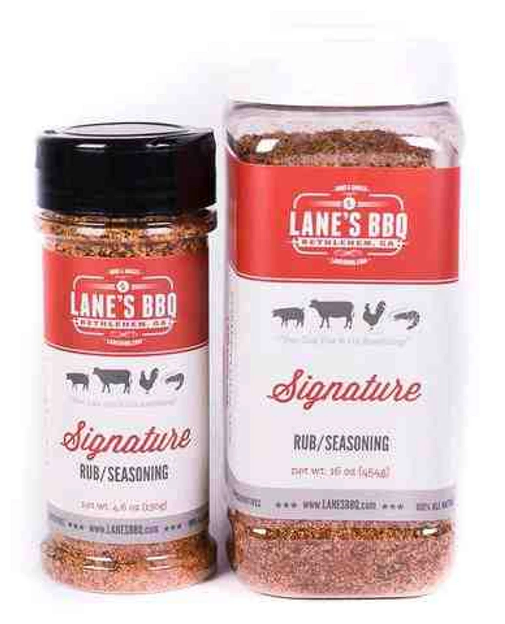 Lane’s Signature rub is great on everything! Chicken, pork, beef, fish, shrimp, potatoes, eggs, & pasta can be ramped up to BBQ quality with a couple shakes and a pinch. Keep away from inedible objects ’cause you may be tempted to eat that too!
