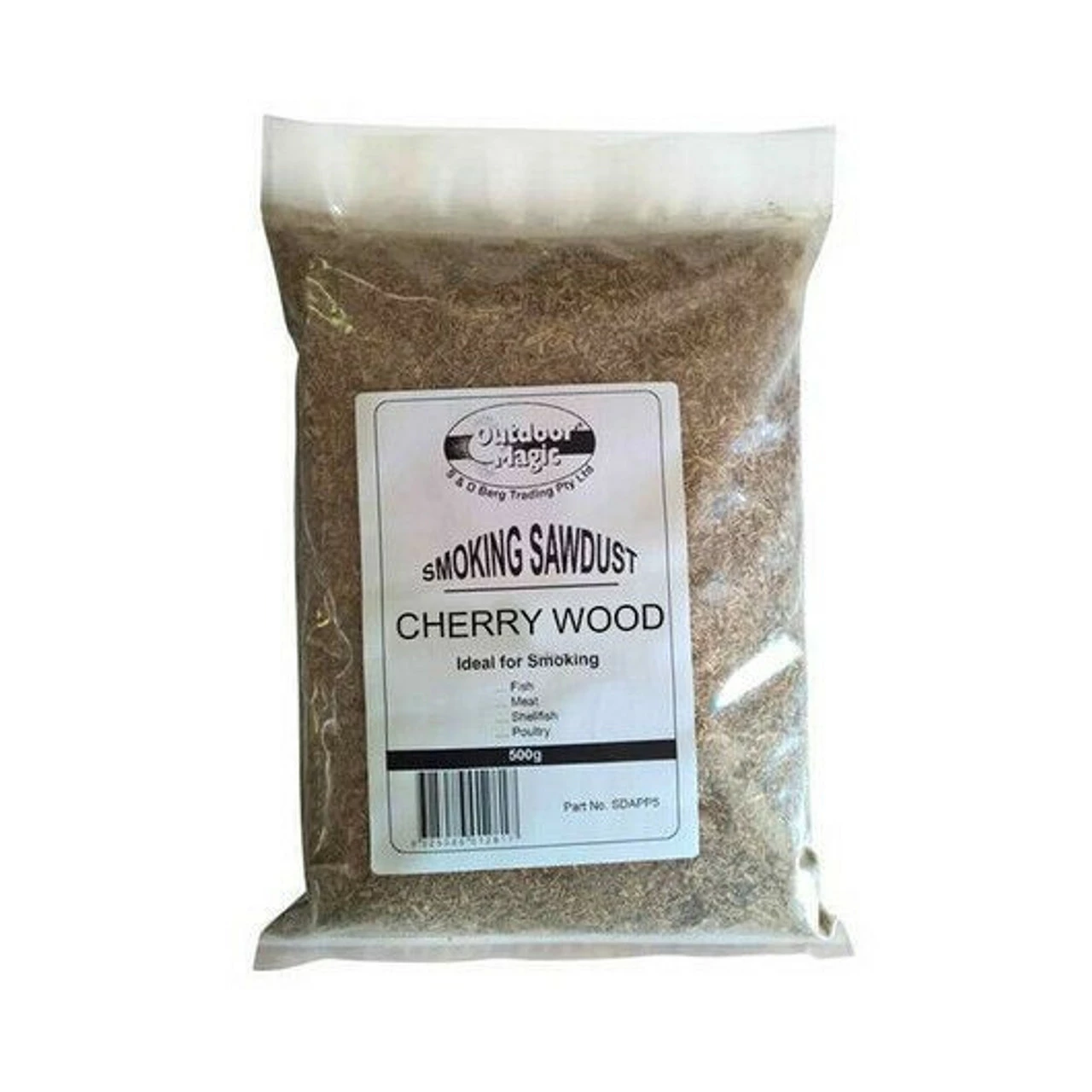 Outdoor magic smoking saw dust cherry wood flavour is ideal to use in a fish smoker. It is sweet and mild in flavour works well with beef or pork, and the smoke turns the meat a rich mahogany colour